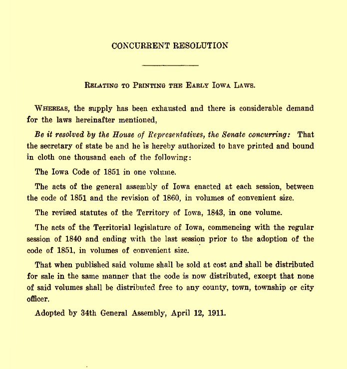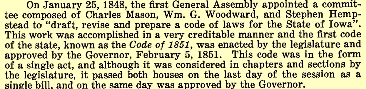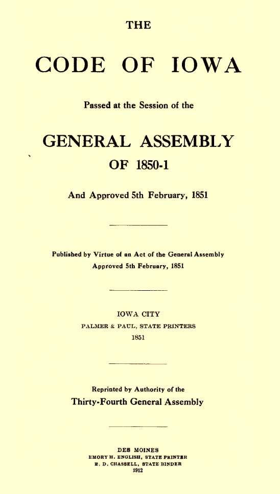 The Code of Iowa – Passed at the Session of the General Assembly Of 1850-1, Iowa Legislature