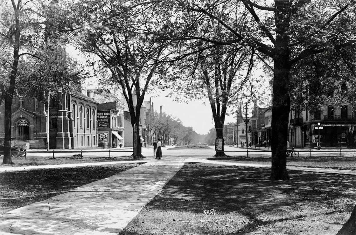 At the turn of the century, Iowa City and SUI (State University of Iowa) were both growing and expanding at an amazing rate. Read more about the 1895 Red Brick Campus. Yet, despite the rapid growth, there was really no long-term plan for expansion. So in 1900, the new University president, George MacLean proposed a dramatic “New University” blueprint, eliminating all of the existing buildings surrounding Old Capitol (there were ten at the time!), replacing them with four stately educational buildings (today’s Pentacrest). In a letter to the president of the University of Oklahoma, MacLean wrote: