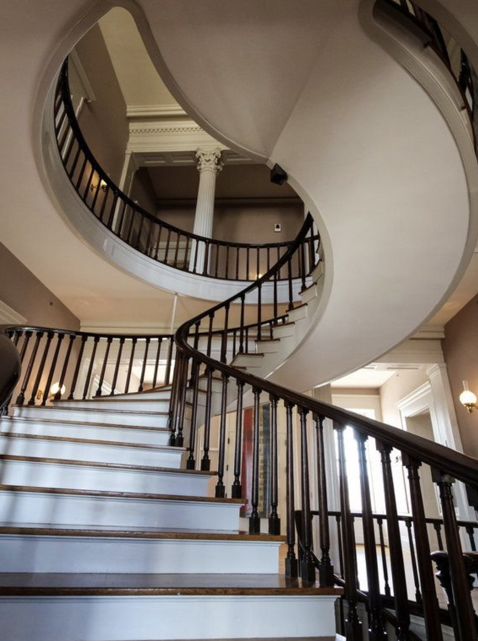 One of the first things that most visitors to Old Capitol in Iowa City notice when they walk through the front door is the absolutely stunning reverse-spiral staircase that welcomes you into the building.