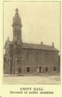 Location: Built in 1870, Unity Hall, or Old Unity, as some called it, stood directly across the street from University Square – on the northeast corner of Clinton Street and Iowa Avenue.