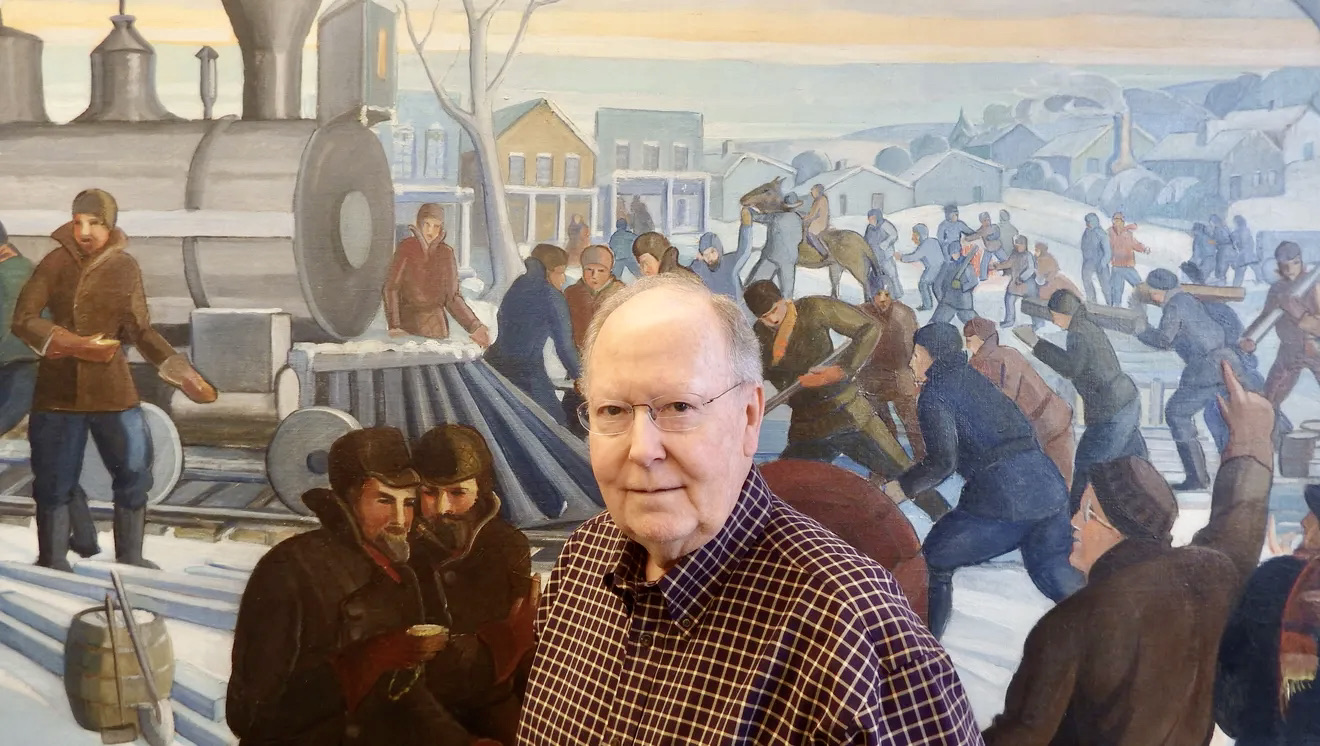 In 2017, when Longfellow School was in the midst of a major remodel, Iowa City lawyer,J. Patrick White, took it upon himself to find a temporary home for #6 Stage Ready and #7 Railroad Arrives while the renovations at Longfellow occurred. A brilliant move indeed, because with the publicity that surrounded the temporary re-location of these two treasures – Iowa City Senior Center and Iowa City Public Library – more people had an opportunity to find out about these hidden gems and actually see them up-close and personal. Click here to watch the entire 1.5 hour presentation White gave at the Iowa City Library for the 2017 Weber Days Celebration.